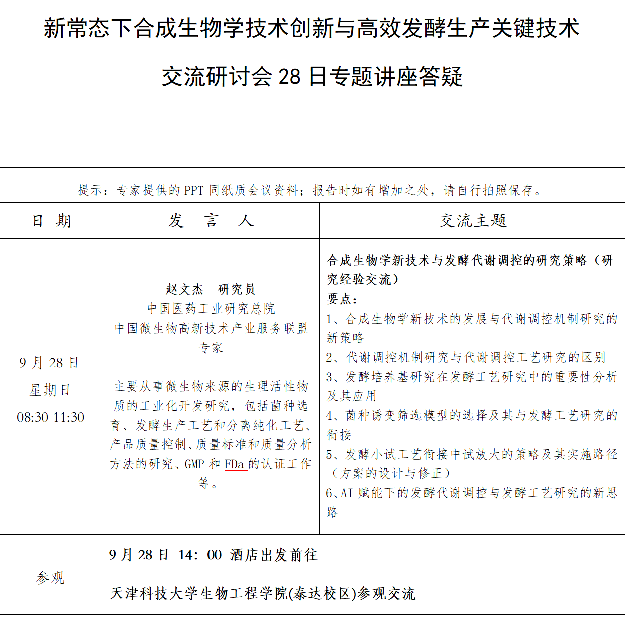 2025年09月26-28日,“新常态下合成生物学技术创新与高效发酵生产关键技术交流研讨会”在天津召开。