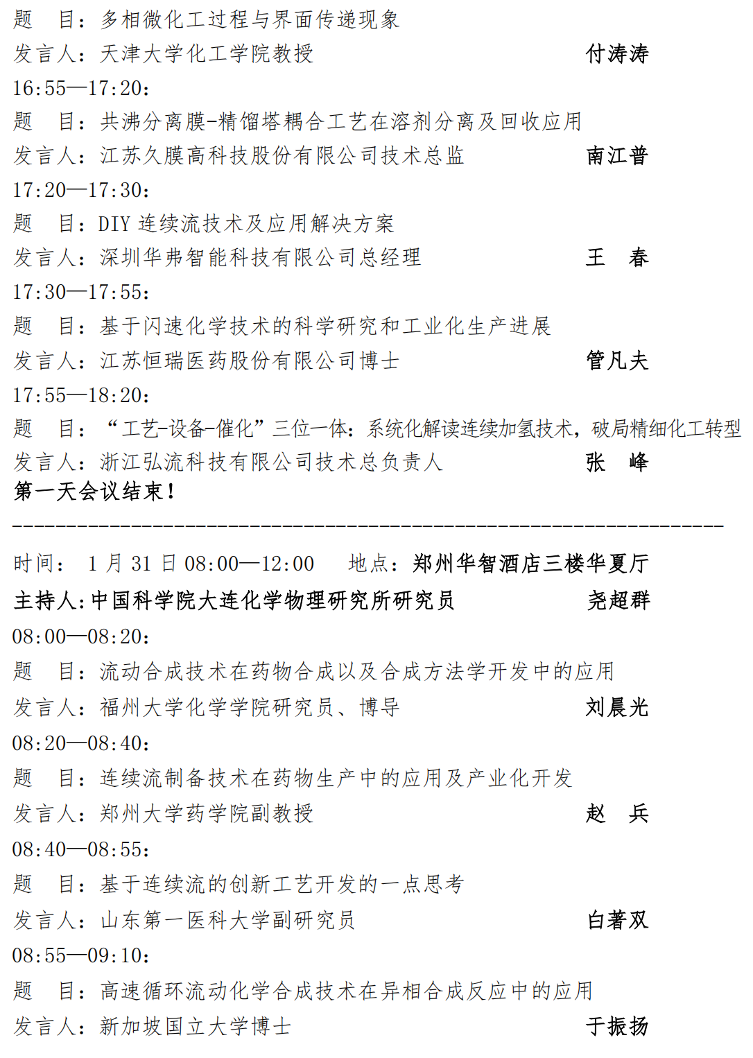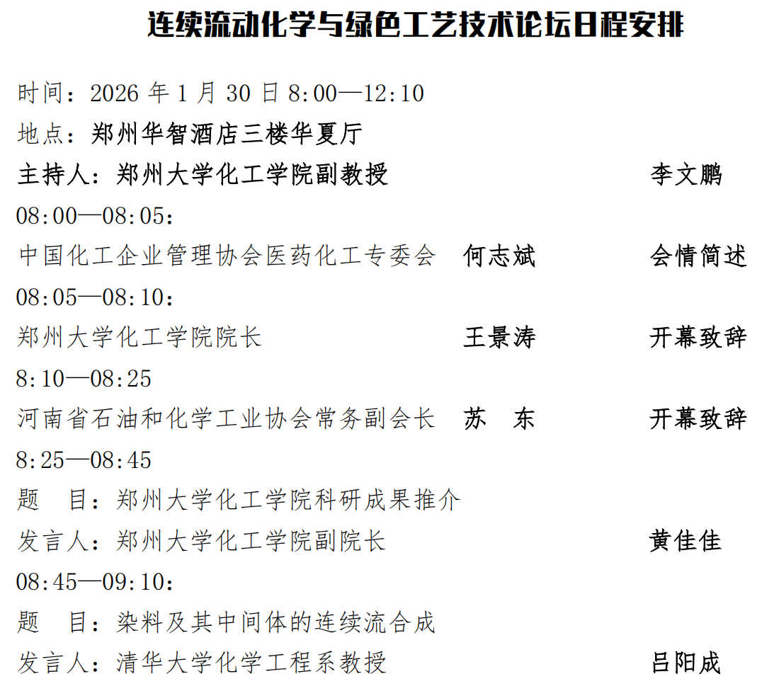 2026年01月29-31日,“2026 连续流动化学工艺开发及绿色工艺新技术装备应用论坛-暨催化合成技术交流研讨会”在河南郑州召开。