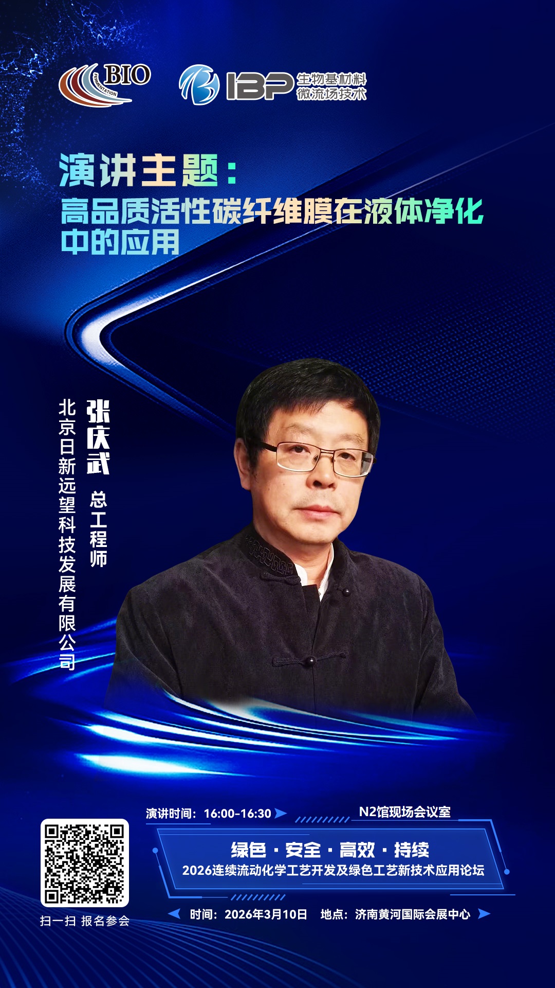 同期3月10日下午16:00-16:30在济南黄河国际会展中心N2馆现场会议室,我司总工程师张教授将会进行《高品质活性碳纤维膜在液体净化中的应用》主题座。