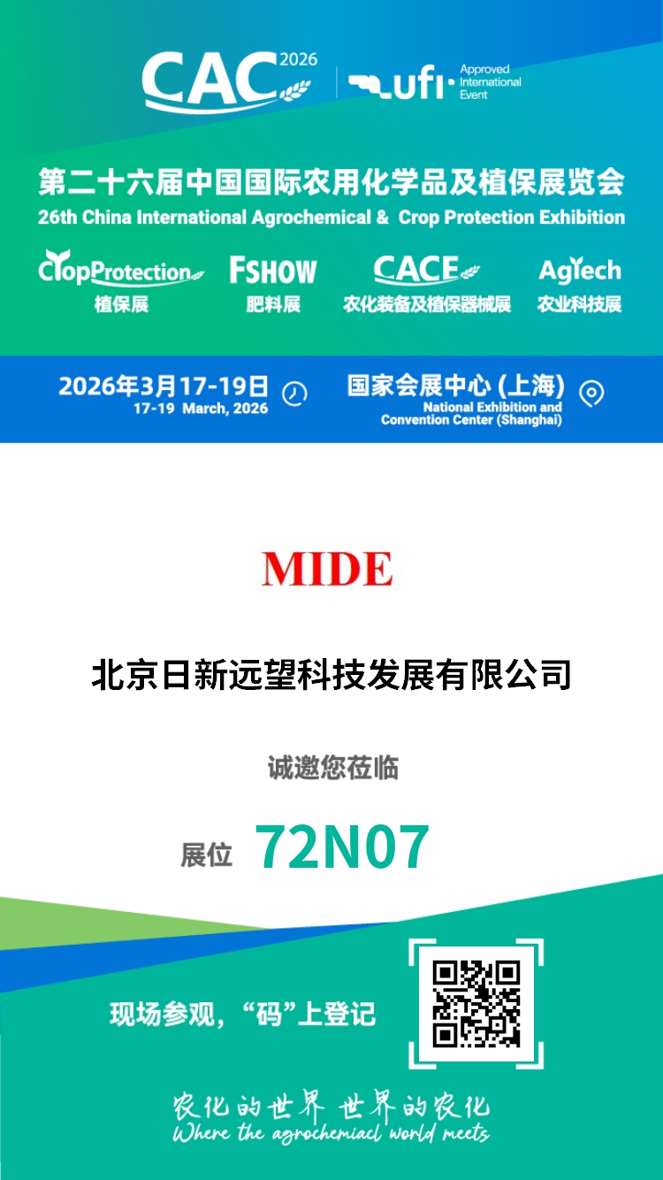 第二十六届中国国际农用化学品及植保展览会(CAC2026)将于2026年3月17-19日在国家会展中心(上海)5.2、6.2、7.2、8.2、1.2、2.2馆举办。