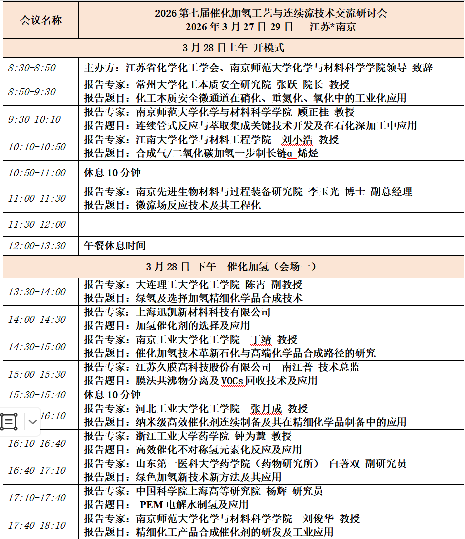 2026年03月27-29日,“2026第七届催化加氢工艺与连续流技术交流研讨会”在南京举办。
